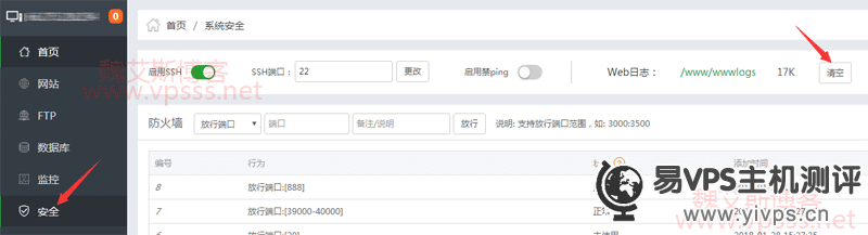 2、清理 WEB 日志。找到系统安全,右侧点击清空 web 日志。