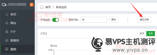 1、清除系统监控记录。打开宝塔面板后台,找到监控,点击清空记录。