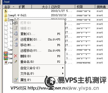 在要操作的目录上,右击就会出现复制、远程复制、移动、远程移动、删除、重命名、属性(设置权限和属主),如下图: